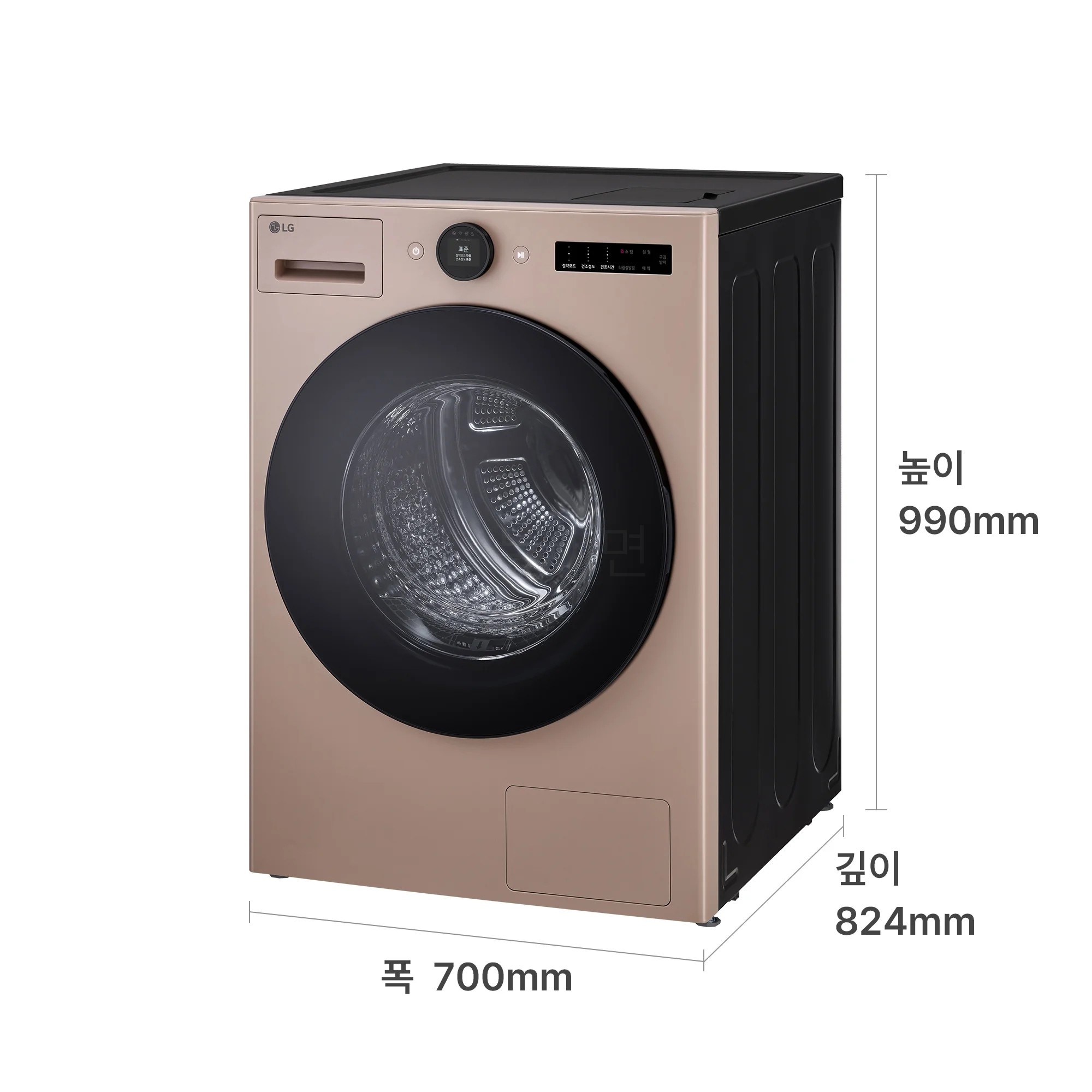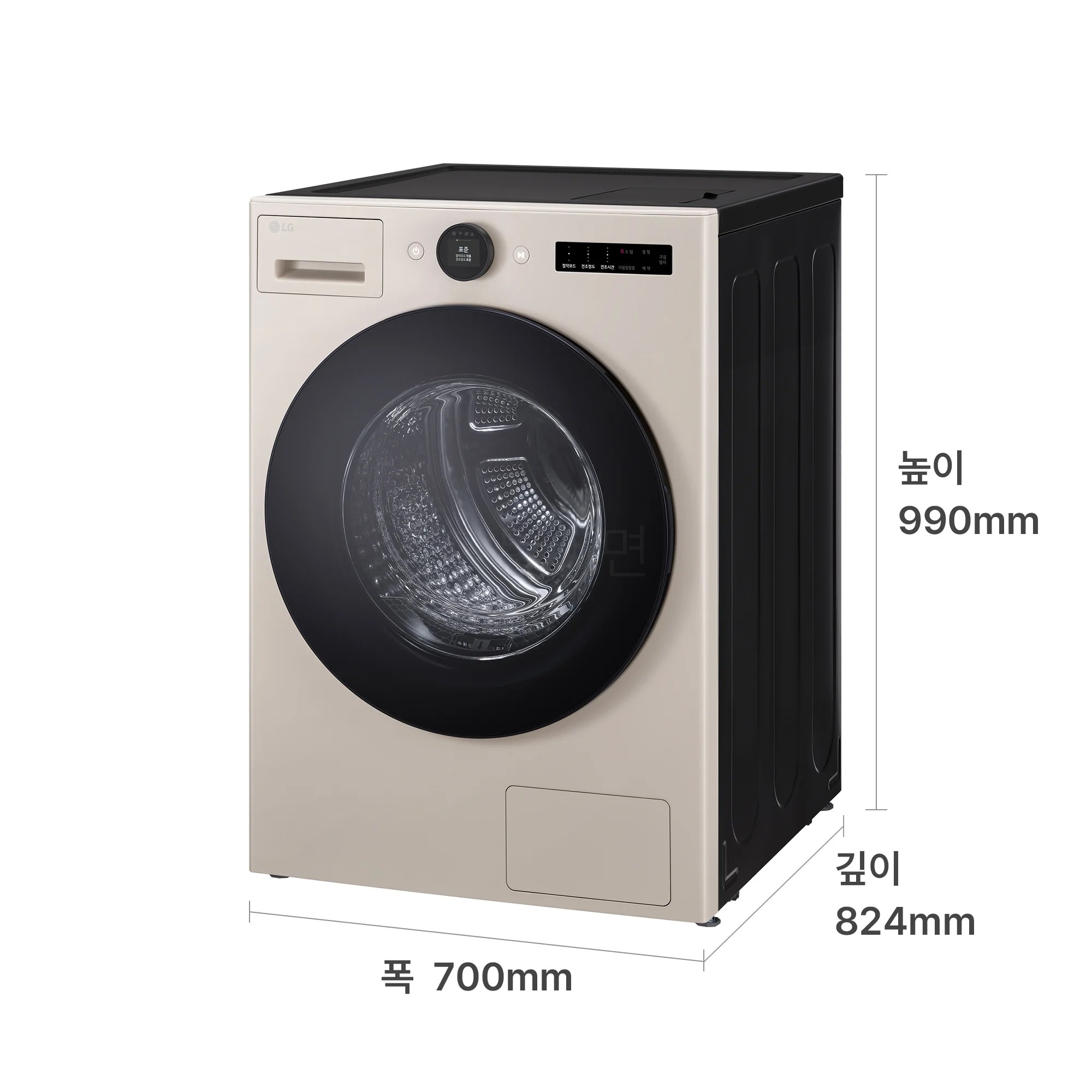 네이처베이지 컬러는 오브제컬렉션 특유의 무광 질감이에요. 세탁실에 놓았을 때 시각적으로 튀지 않으면서 고급스러운 인상을 주는 톤이에요.